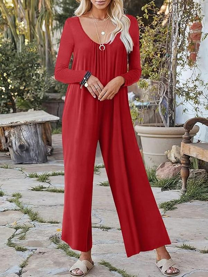 • Feature: one piece long sleeve jumpsuits, v neck, backless, wide leg pants jumpsuit for women creating a pleasing long vertical wrinkle effect. two side pockets can store small items such as keys. stretchable long pants jumpsuit, loose casual style.